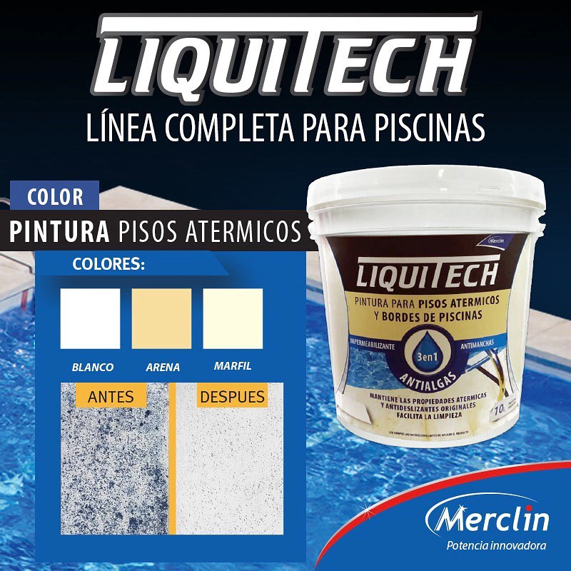 Descubra la solución ideal para la renovación y protección de sus bordes de piscinas y pisos atérmicos con la Pintura Liquitech. Elaborada a base de resinas acrílicas de alta resistencia, esta pintura ofrece un acabado impecable que no solo recupera el color original sino que también garantiza una durabilidad superior frente a manchas y desgaste.